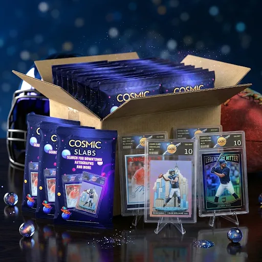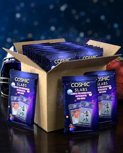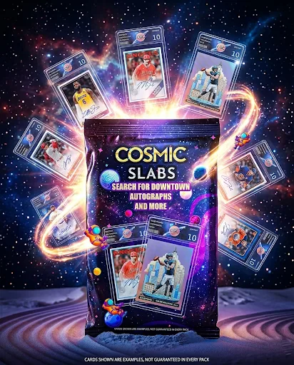 The thrill doesn’t stop there—collectors will be hunting for high-value Downtowns, special autograph cards, and rare numbered cards that could be hiding inside the packs. Perfect for live breakers, hobby shops, and collectors, Cosmic Slabs delivers a premium mystery experience where every pack brings the excitement of revealing a professionally graded card and the possibility of hitting something huge.