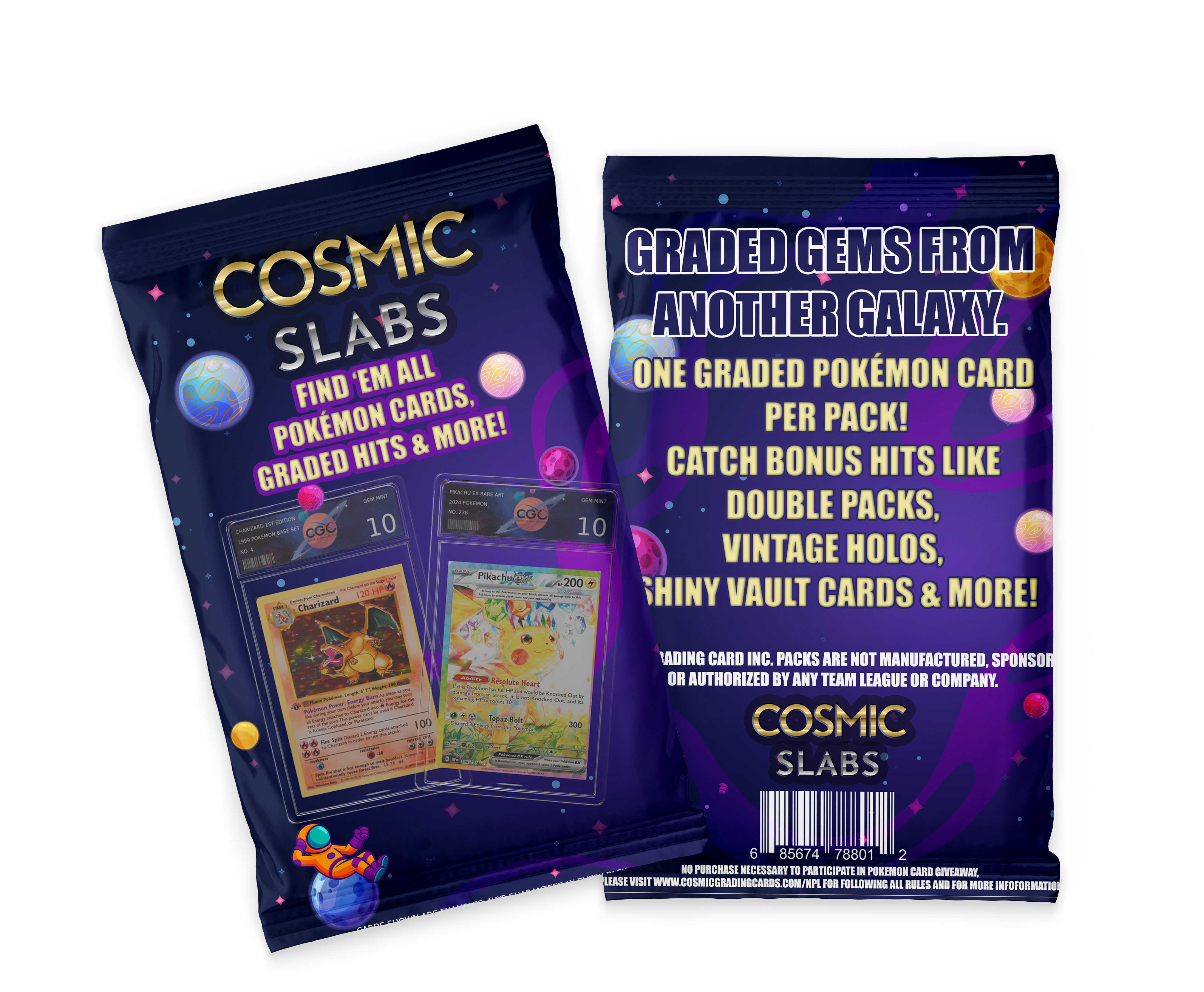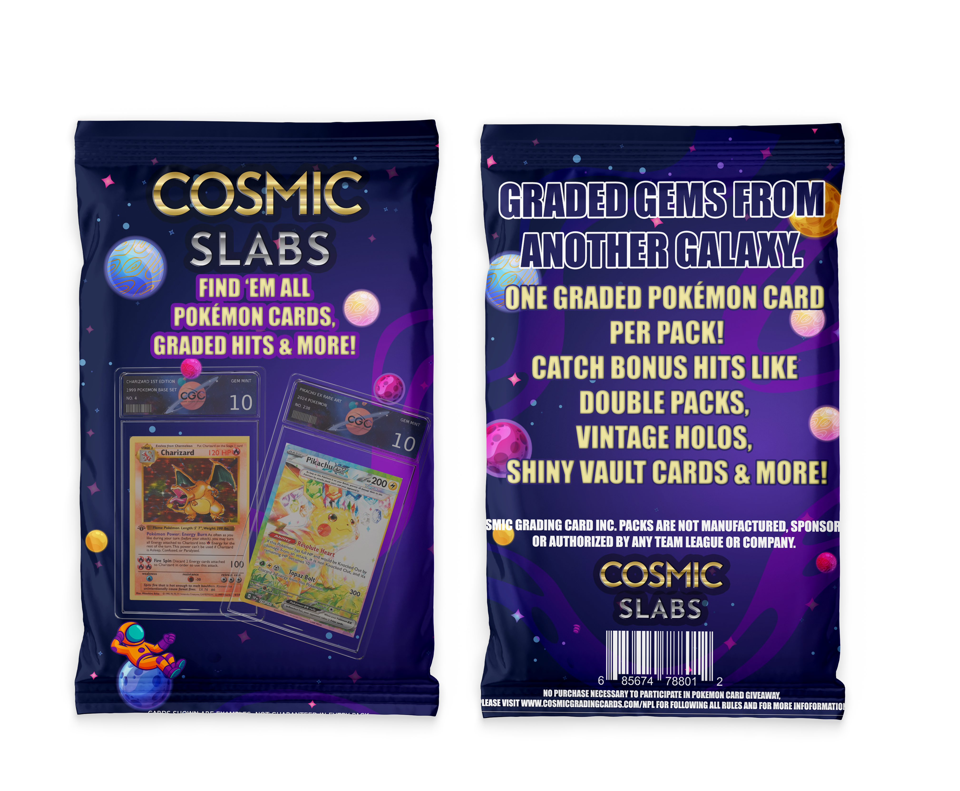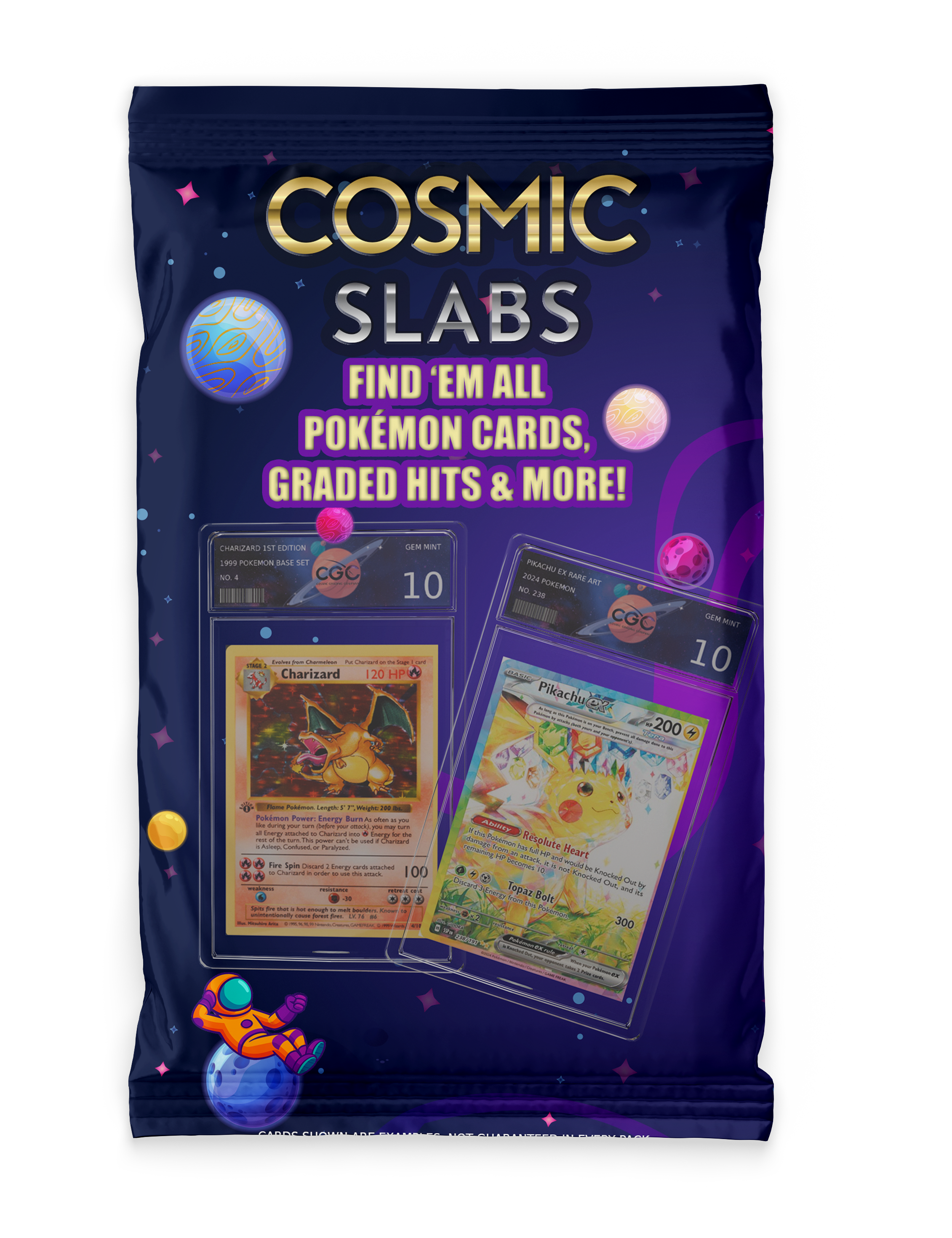We ensure authentic, quality-checked cards in every pack. With a mix of fan-favorites, rares, holos, and more, the Cosmic Slabs Pokémon pack is a must-have for new collectors and seasoned trainers alike.
