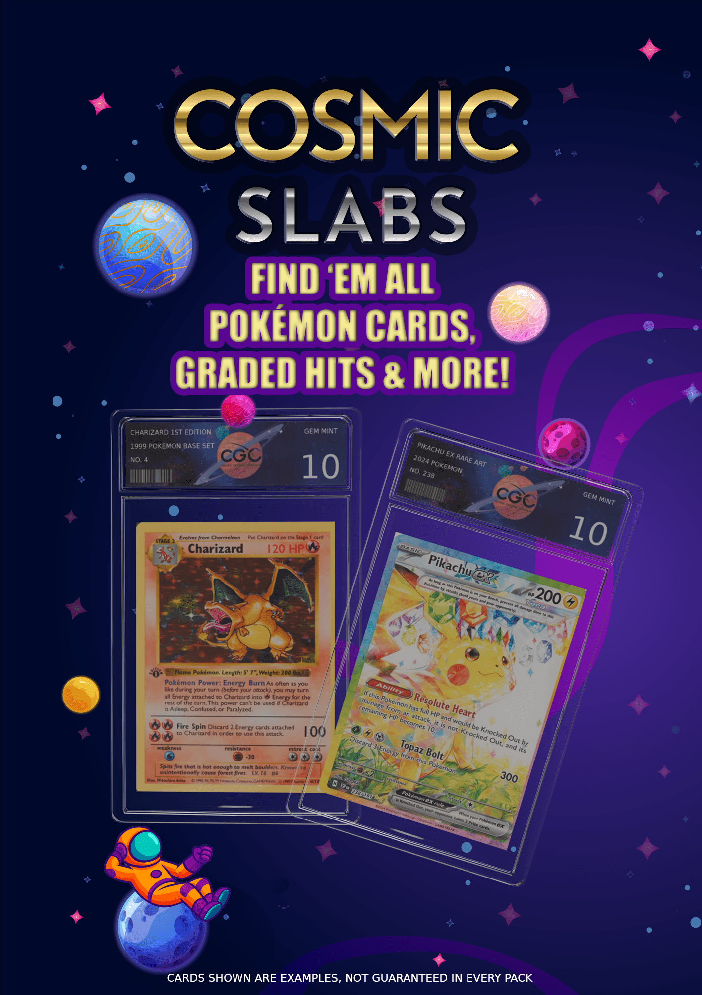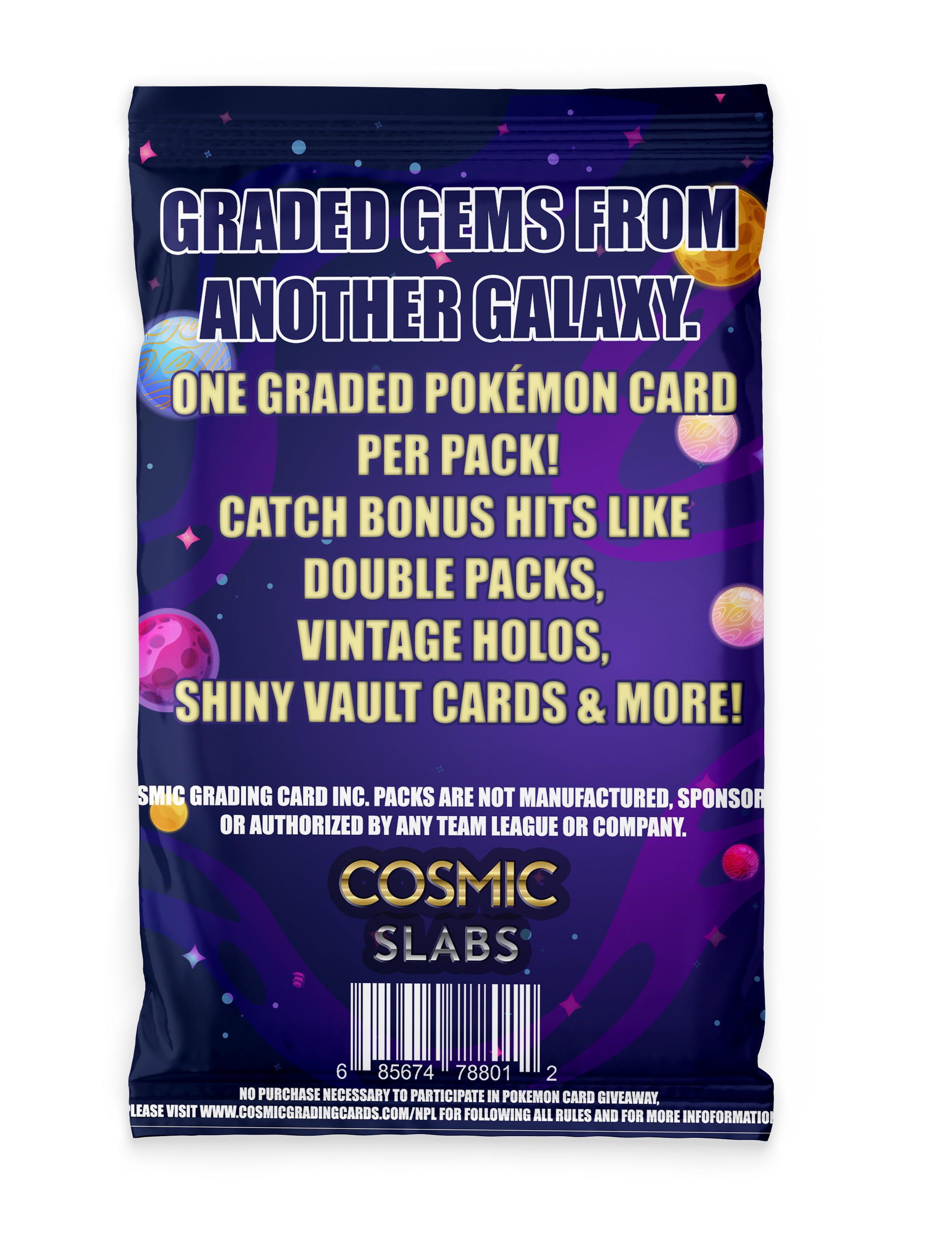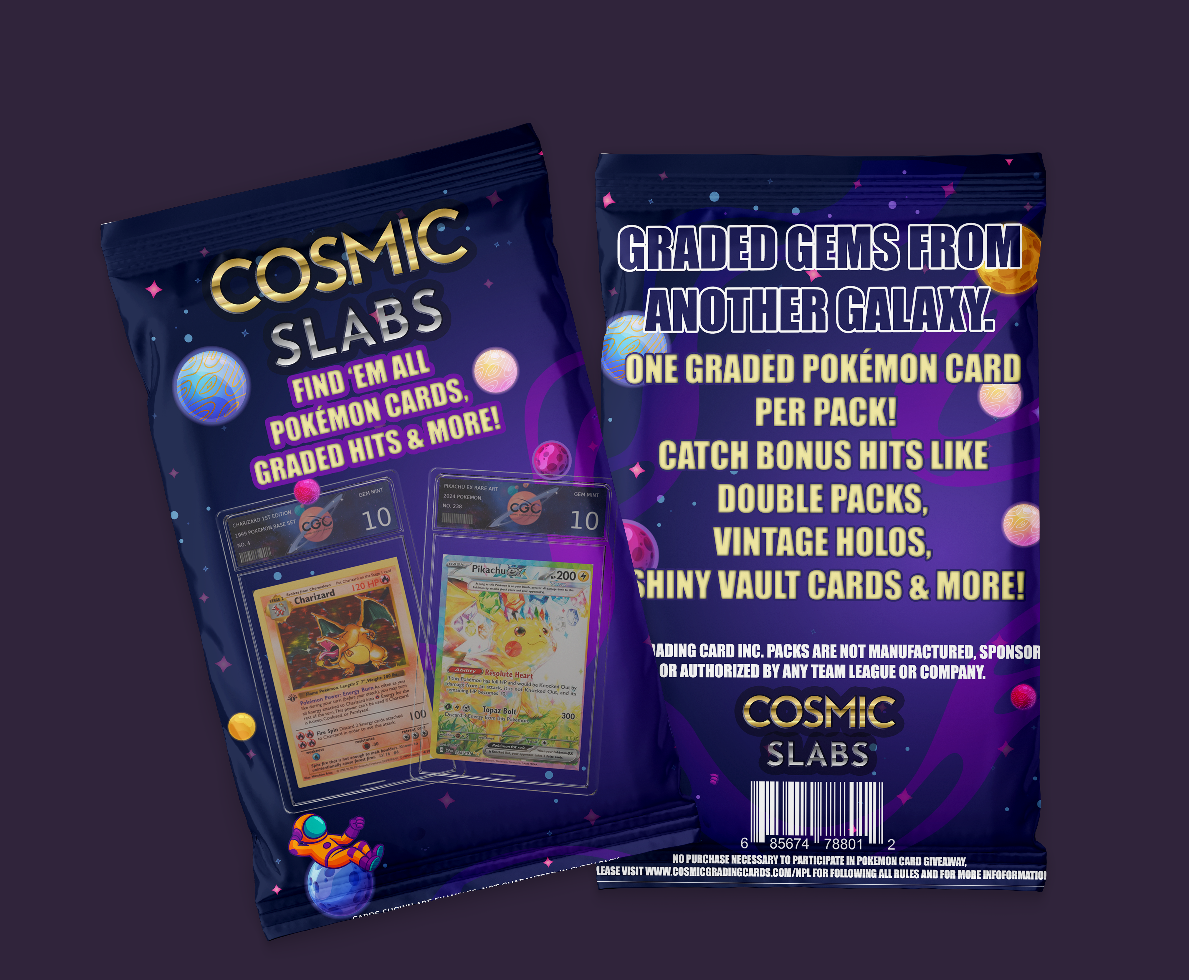 We ensure authentic, quality-checked cards in every pack. With a mix of fan-favorites, rares, holos, and more, the Cosmic Slabs Pokémon pack is a must-have for new collectors and seasoned trainers alike.